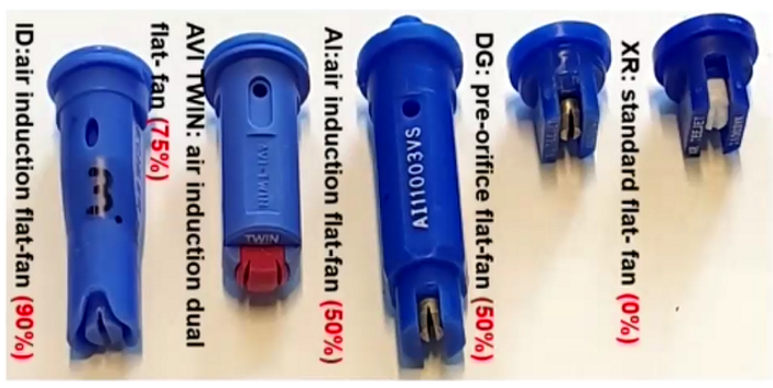 Laboratoriumonderzoek van de Universiteit van Gent (Vlaanderen) geeft aan dat de bestrijding van kleine onkruiden prima uitgevoerd kan worden met driftreducerende doppen. Testen zijn gedaan op zwarte nachtschade en melganzenvoet in kiemplant en in 2-bladstadium. Er werd gespoten in een spuitcabine met Basagran en Asterix in een concentratiereeks.